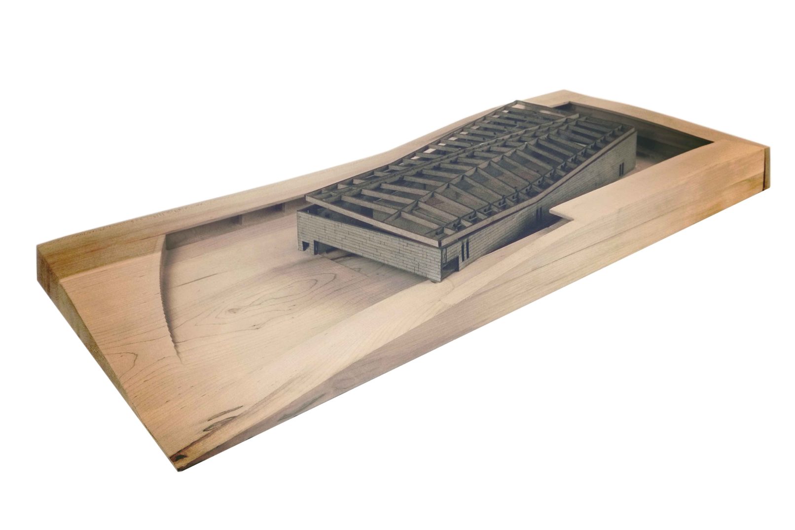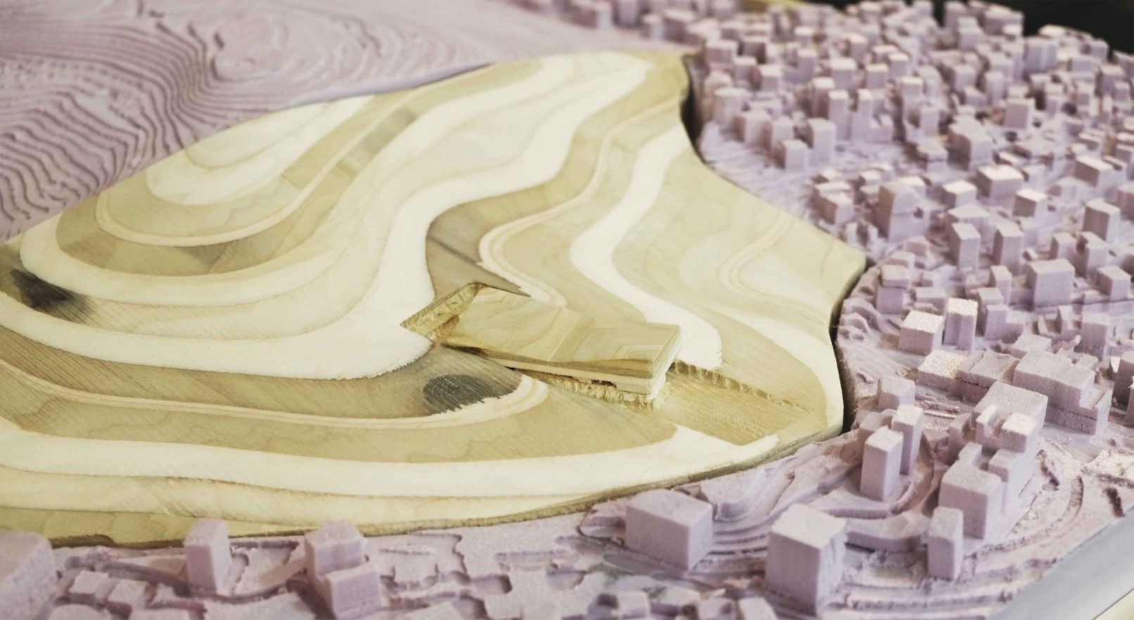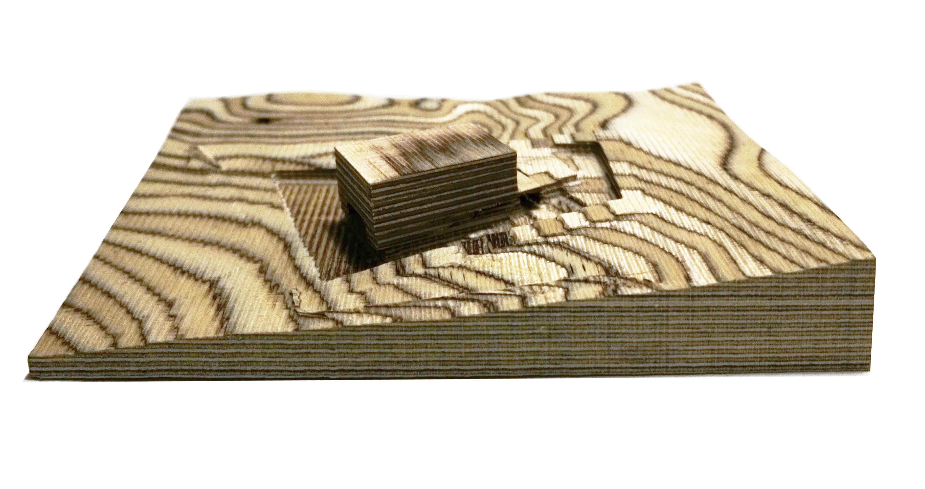 Turkey is in the midst of a culture war between secular and conservative Muslim values. This project considers a competition brief to build a mosque on Camlica hill in Istanbul forms a solution that is considerate of both sides of the cultural divide. Rather than create an ostentatious display of religiosity in opposition to secularism; the new project is sensitive to site, scale, and the surrounding neighborhood. This mosque takes its programmatic cues from the historical Rustem Pasha Mosque and its stacking of commercial function below the main structure. Retail has traditionally been a part of the planning for mosques, with retail financially supporting upkeep of the mosque. The design of the structure also takes cues from landscape artist Michael Heitzer’s work Displaced/Replaced Mass . The ground is excavated the excavated mass is rotated towards mecca and perched back on the site. The form of the project is informed by a series of sculptural models formed from striated plywood.