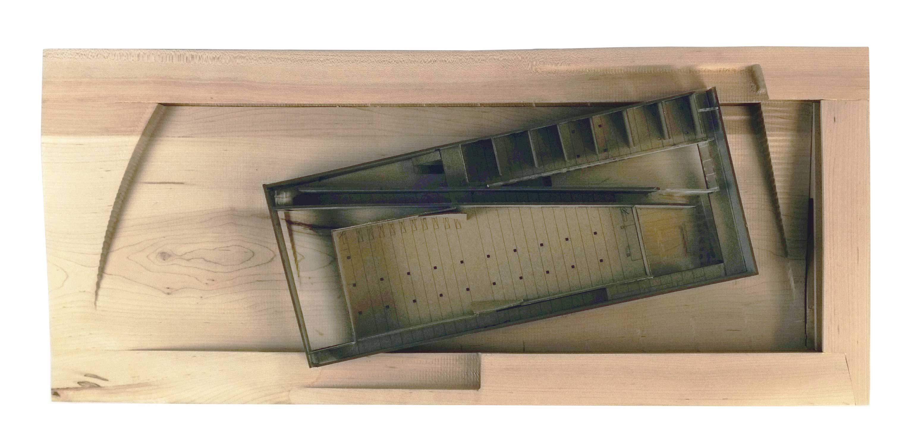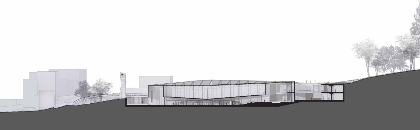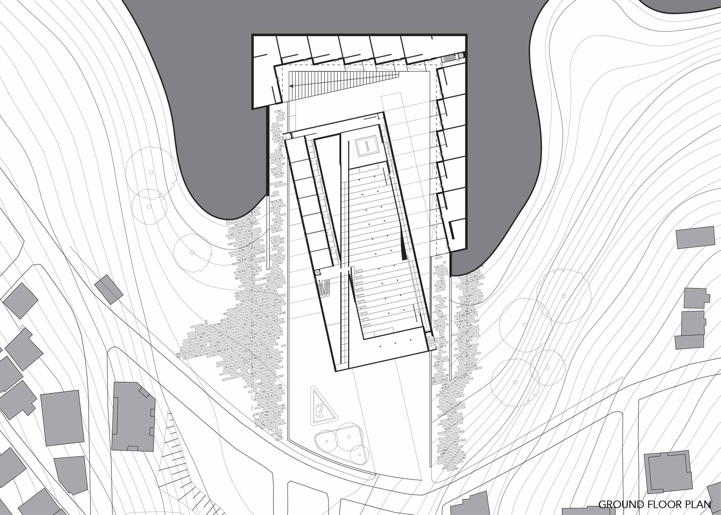 Turkey is in the midst of a culture war between secular and conservative Muslim values. This project considers a competition brief to build a mosque on Camlica hill in Istanbul forms a solution that is considerate of both sides of the cultural divide. Rather than create an ostentatious display of religiosity in opposition to secularism; the new project is sensitive to site, scale, and the surrounding neighborhood. This mosque takes its programmatic cues from the historical Rustem Pasha Mosque and its stacking of commercial function below the main structure. Retail has traditionally been a part of the planning for mosques, with retail financially supporting upkeep of the mosque. The design of the structure also takes cues from landscape artist Michael Heitzer’s work Displaced/Replaced Mass . The ground is excavated the excavated mass is rotated towards mecca and perched back on the site. The form of the project is informed by a series of sculptural models formed from striated plywood.