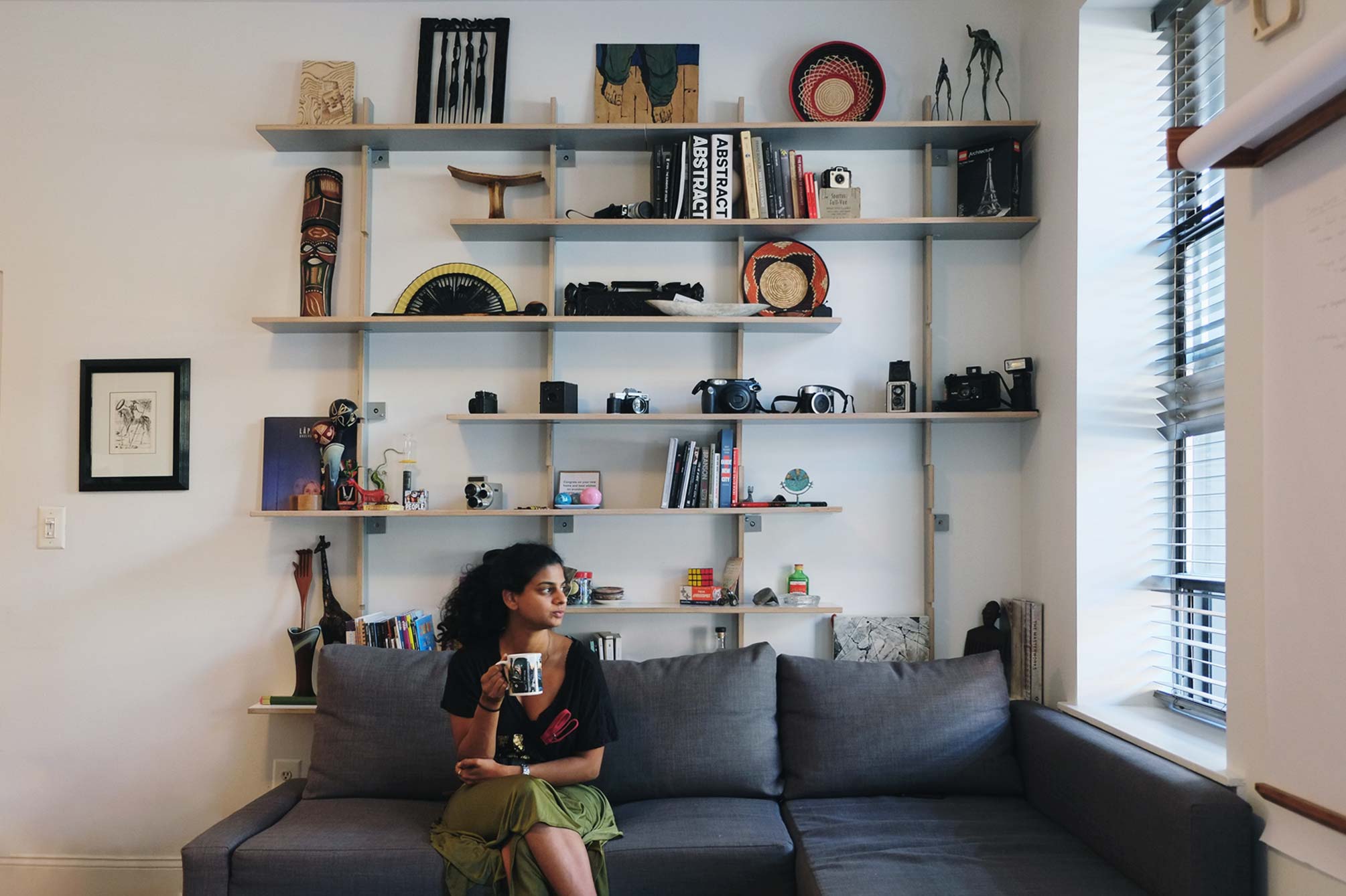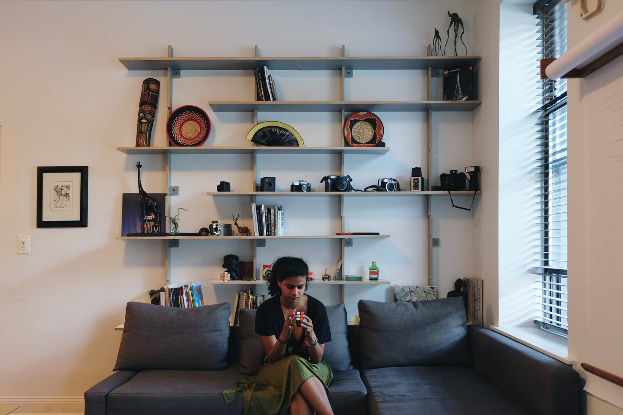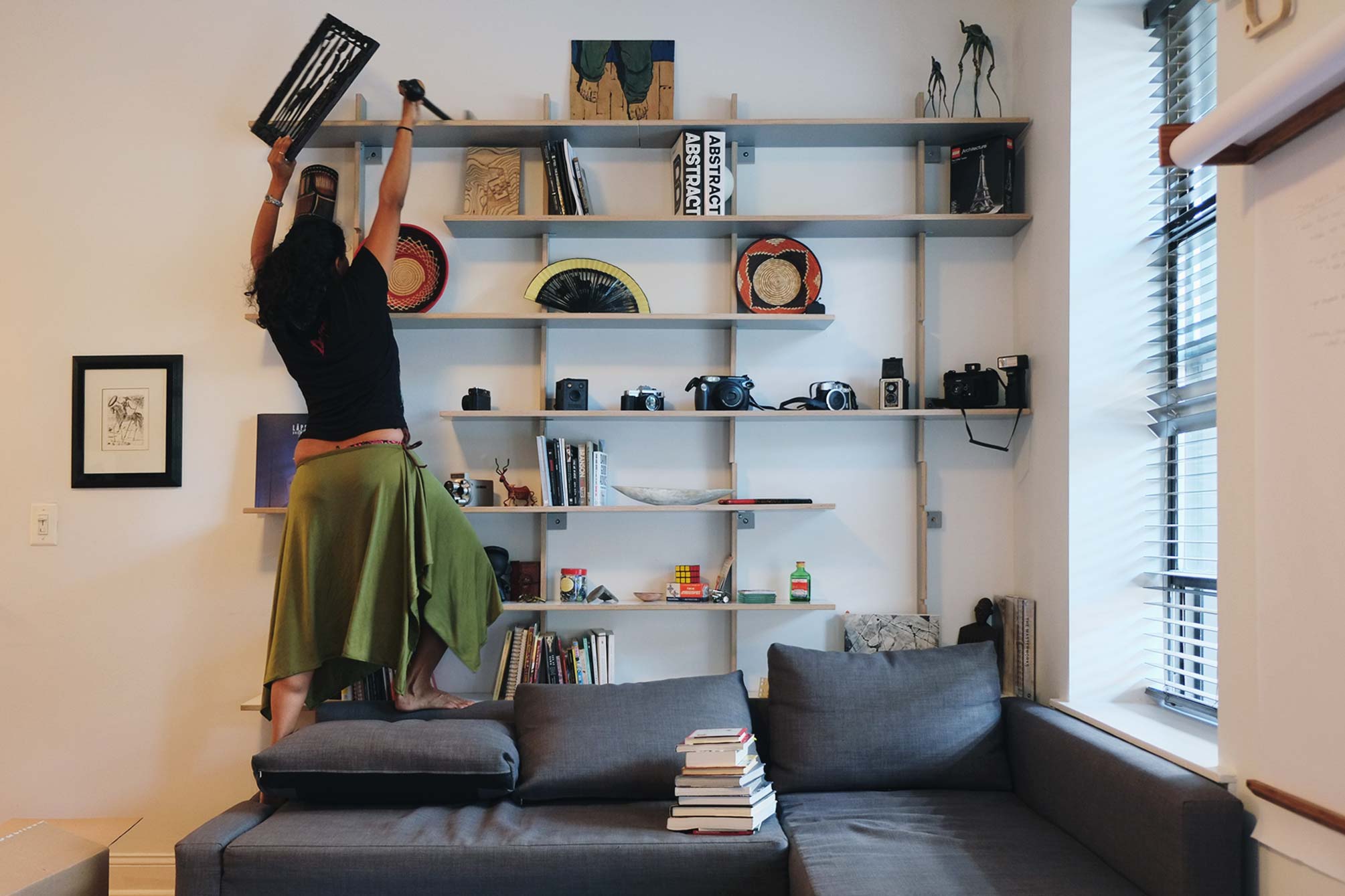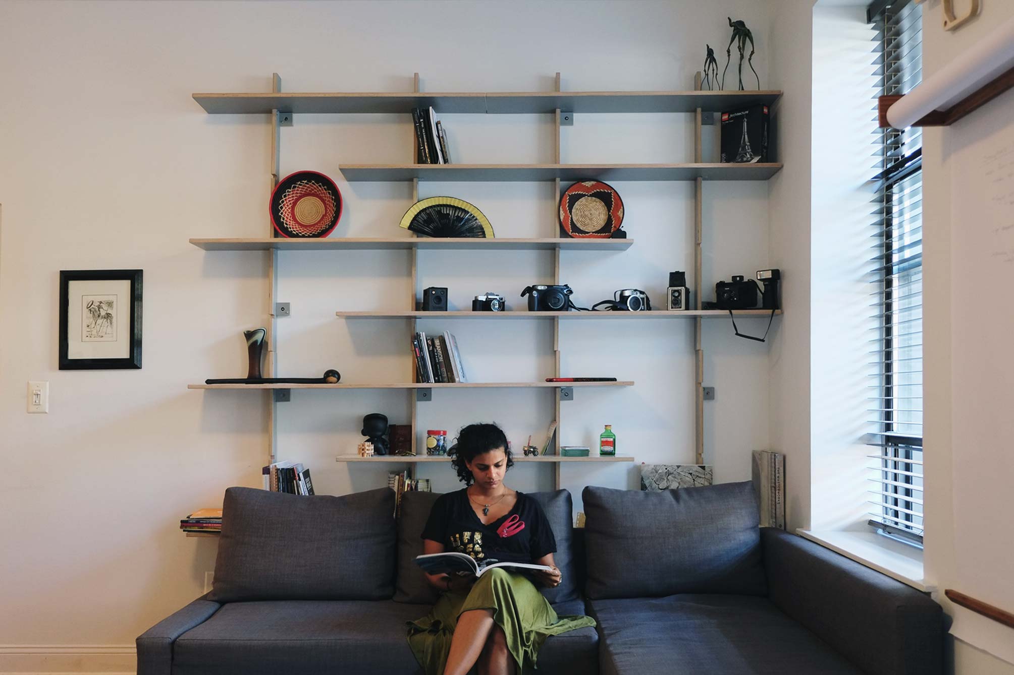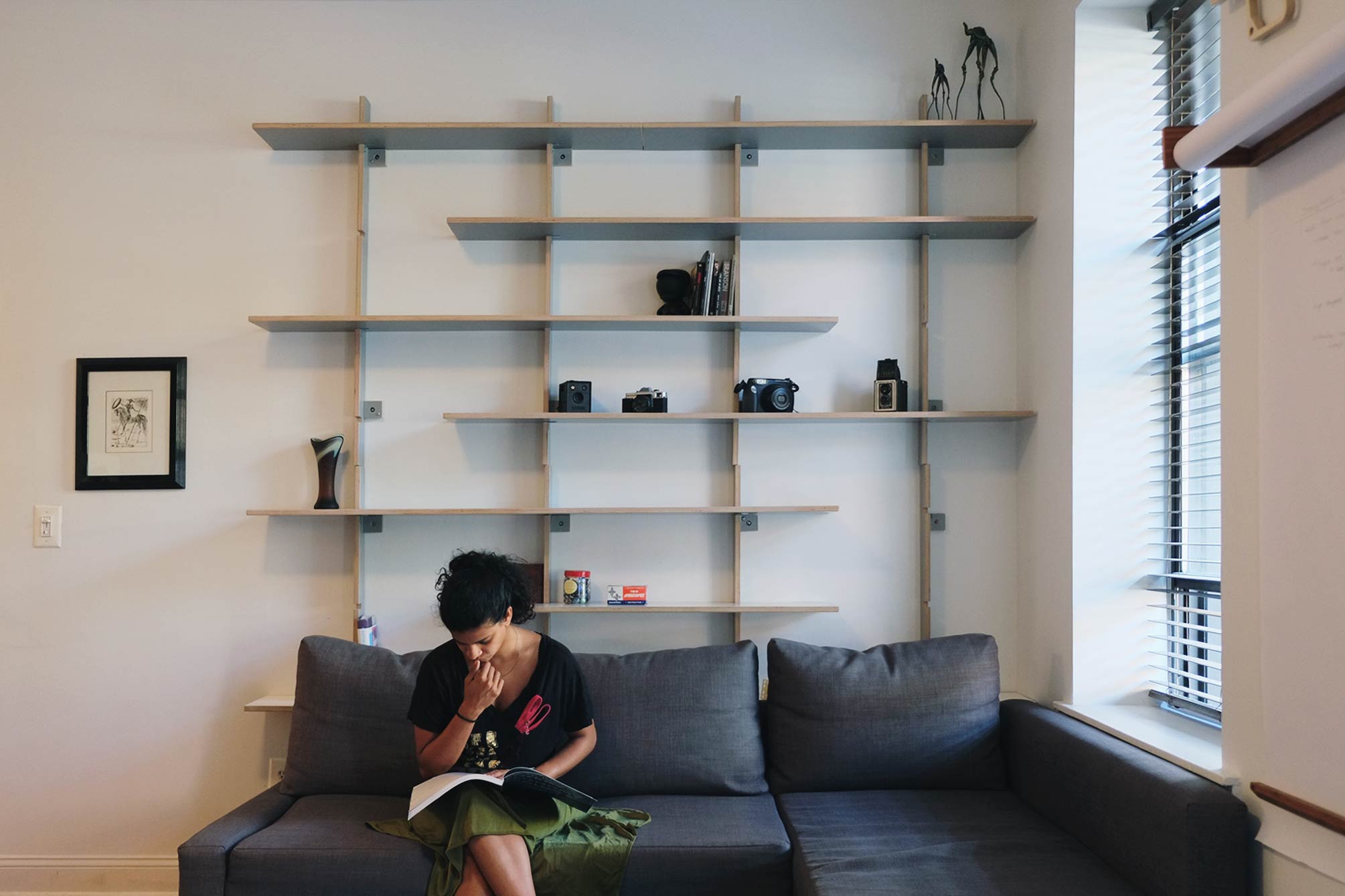 This design and installation were inspired by modular shelving systems such as the 606 Shelving System by Vitsoe and other iconic pieces of mid-century design. In eastern Europe, this minimalist aesthetic was also paired with a simplicity of materials and construction that could be replicated easily and effectively by almost anyone.