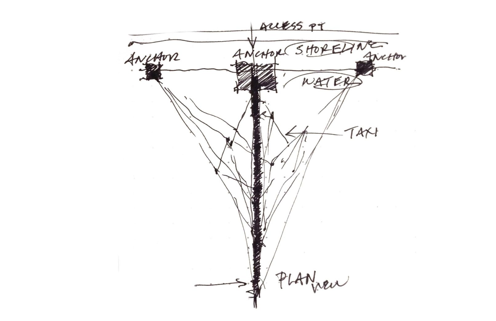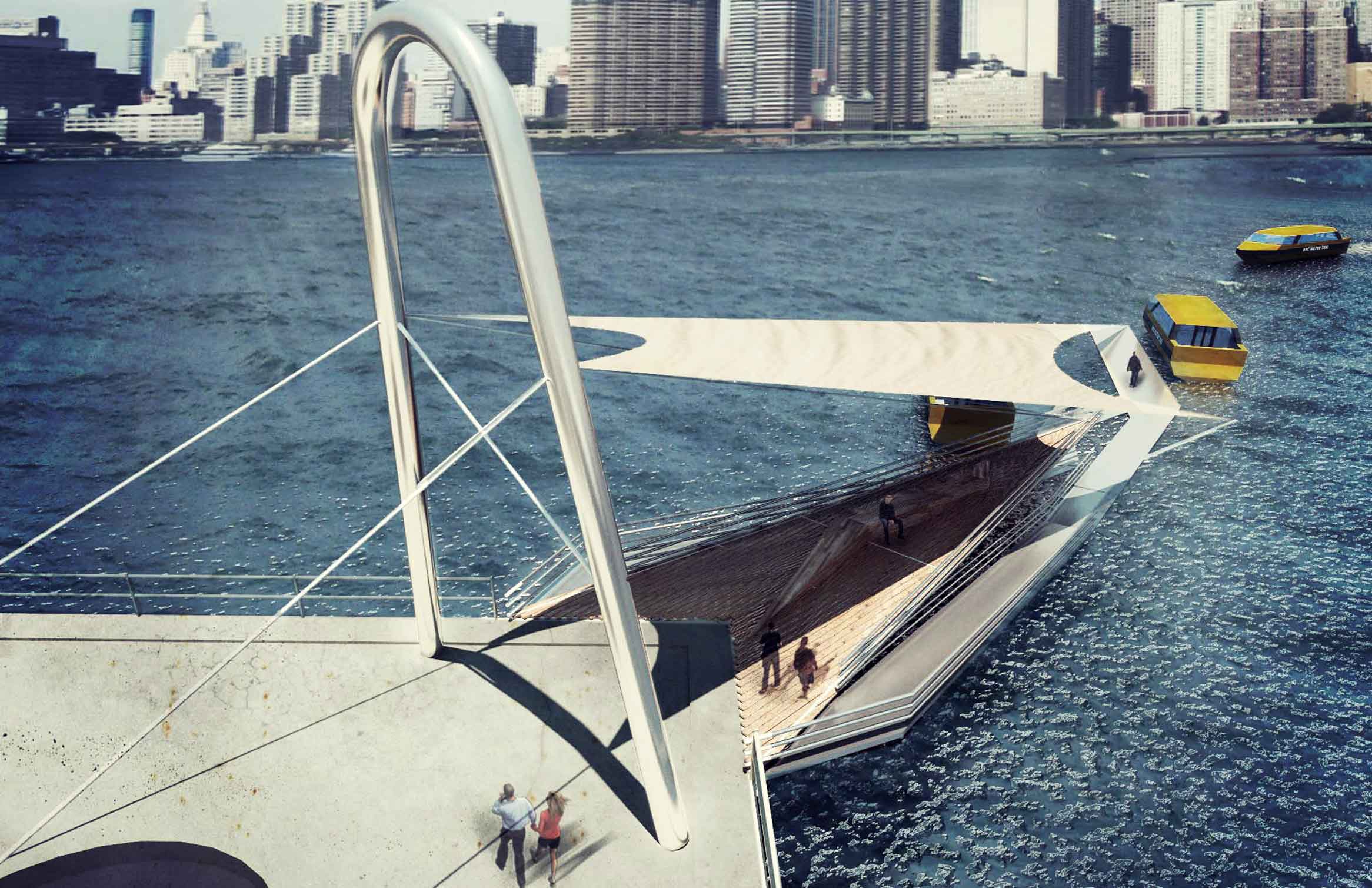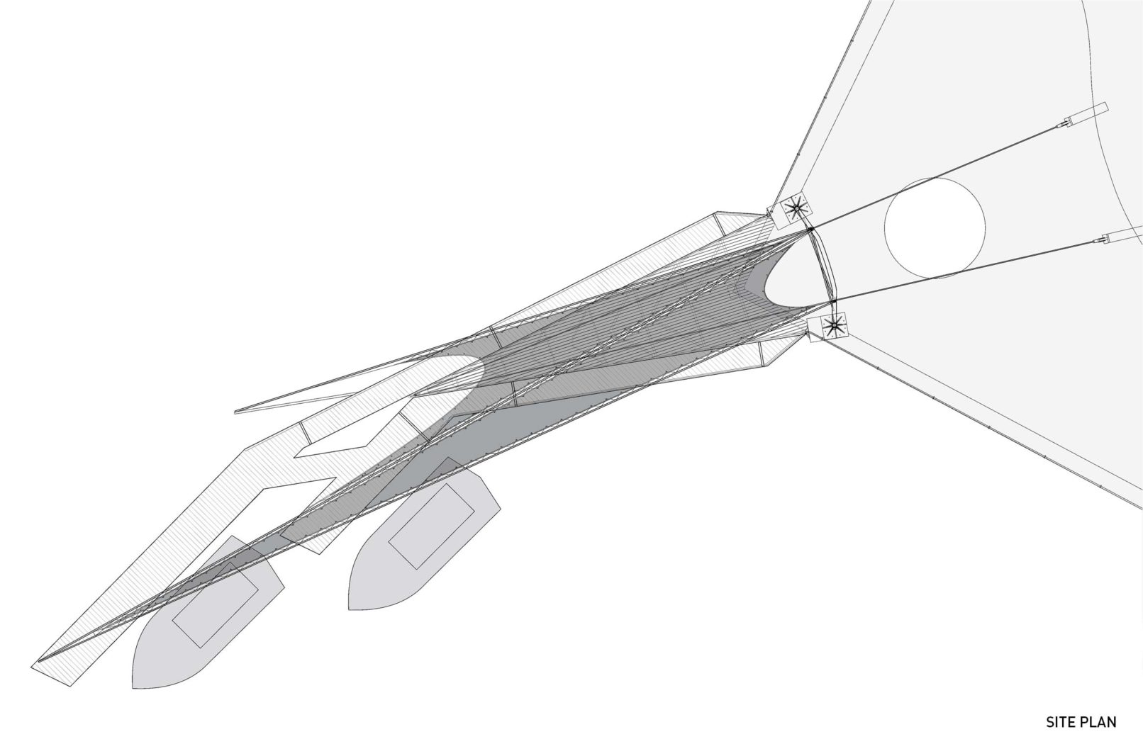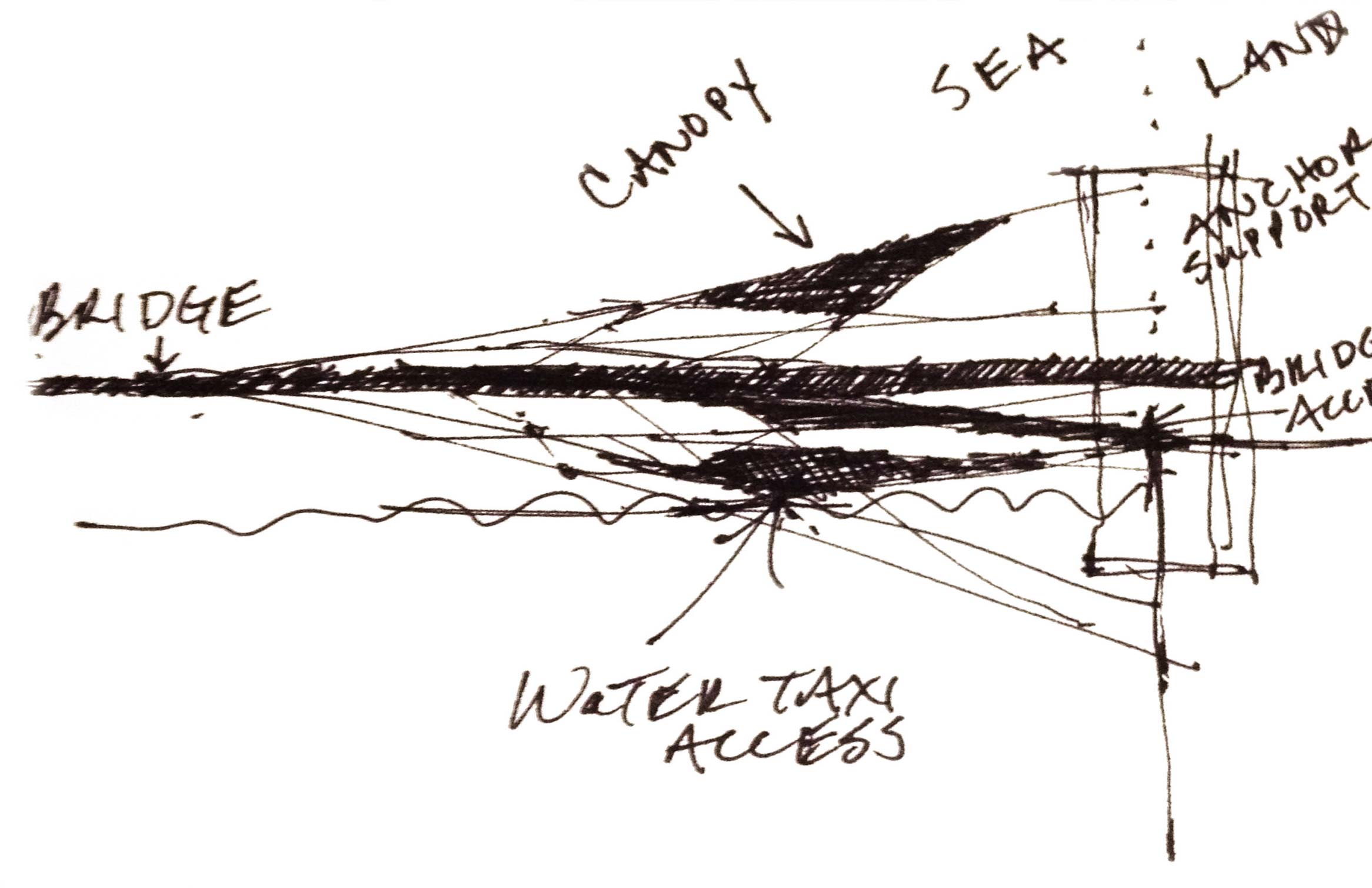 This was a quick project exploring fabric and tension structures. Long Island City is a quickly gentrifying neighborhood in Queens. To take advantage of this new interest, River Taxi Station was designed as a new hub for boat and small ferry service across the East River. The project is conceived as a lookout platform that is cantilevered over the water. Leading from this top level is a gently sloping deck that leads visitors down to the water and boats. The structure is covered by a canvas canopy stretching over the viewing platform and extending out to the edge of the floating docks.